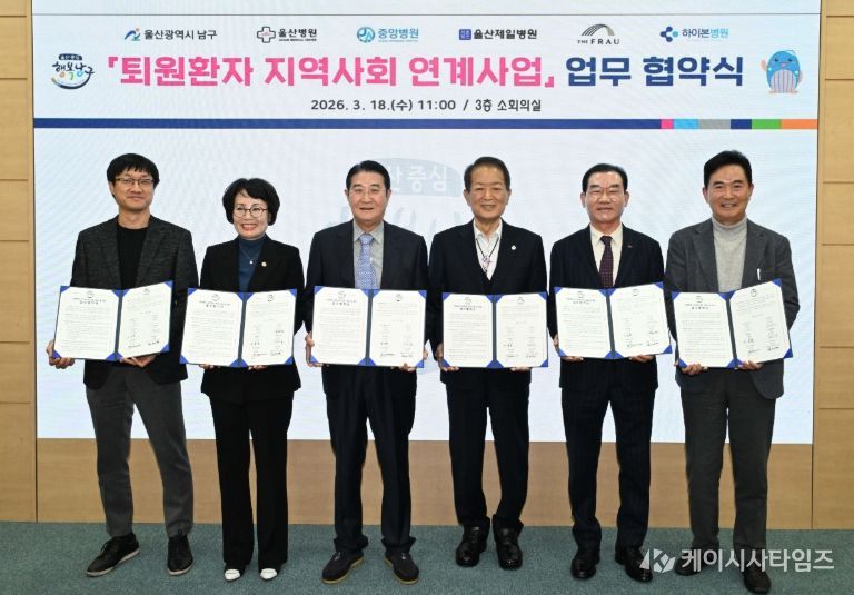 (케이시사타임즈) 울산 남구는 퇴원 환자의 지역사회 복귀와 안정적인 일상회복을 지원하기 위해 관내 5개 의료기관과 퇴원환자 지역사회 연계사업추진을 위한 업무협약을 18일 체결했다.