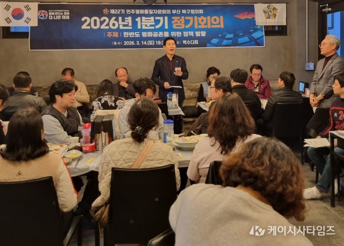 (케이시사타임즈) 민주평화통일자문회의 부산 북구협의회는 지난 14일 오후 6시 30분, 경남 통영에서 자문위원 31명이 참석한 가운데 ‘한반도 평화공존을 위한 대내외 정책 추진방향’을 주제로 ‘2026년 1분기 정기회의’를 개최했다.