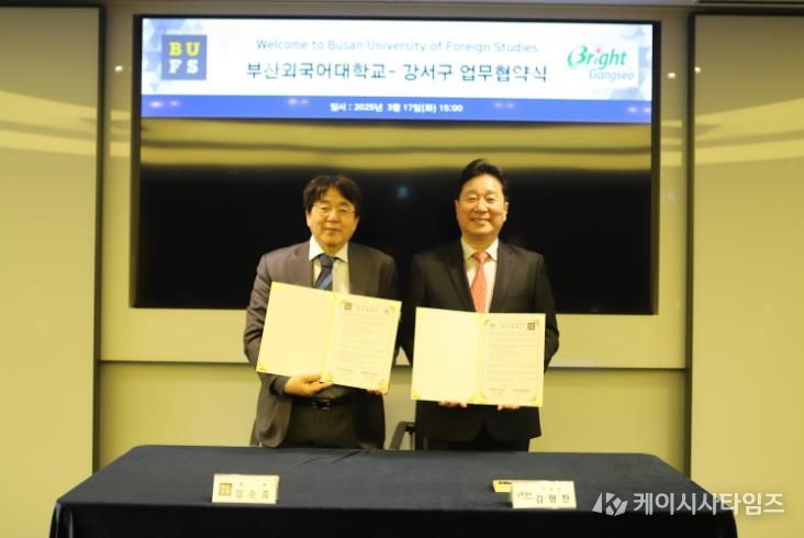 (케이시사타임즈) 부산 강서구는 3월 17일 부산외국어대학교 총장실에서 부산외국어대학교와 지역사회 교육 발전 및 관·학 협력 강화를 위한 업무협약(MOU)을 체결했다.