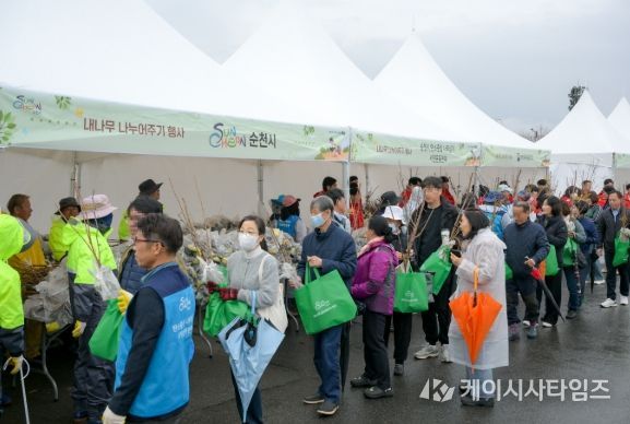 이번 행사는 전라남도, 순천국유림관리소, 순천농협, 순천시산림조합과 협력하여 마련됐으며, 대추·살구·자두·복숭아 등 과실수와 황칠, 서향(천리향), 미니화분 등 총 7종 21,000주의 묘목을 준비해 순천시민 3,000명에게 1인당 7주씩 배부했다.