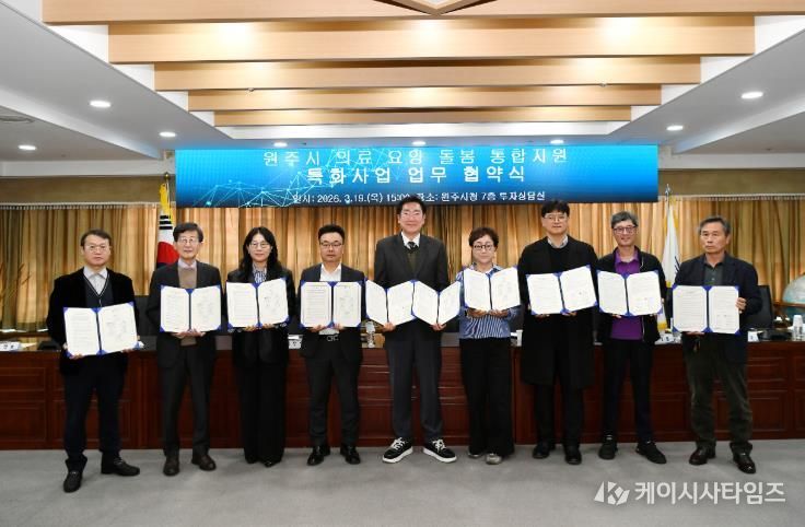 (케이시사타임즈) 원주시는 지난 19일 시청에서 ‘의료·요양·돌봄 통합지원’ 특화사업 추진을 위한 업무협약식을 개최했다.
