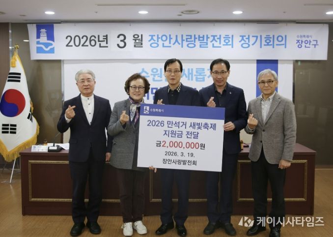 (케이시사타임즈) 수원시 장안구 대표 봉사단체 장안사랑발전회가 지난 19일, '2026 만석거 새빛축제'의 성공적인 개최를 응원하며 지원금 200만원을 전달했다.