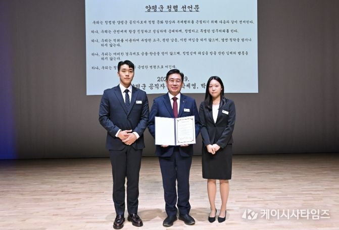 청렴선포식은 공직자 대표 2인의 청렴선언문 낭독을 시작으로 공직사회의 청렴 실천 의지를 공유하고 반부패 개선 노력에 동참할 것을 약속하는 자리로 진행됐다. 이어 양평군의 청렴 의지를 담은 이화선 작가의 캘리그래피 퍼포먼스가 펼쳐졌으며, 전진선 양평군수와 김종배 공무원노조 양평군지부장, 직원대표(박세영, 박정연)가 함께 장붓을 들고 마무리 점을 찍으며 선포식을 마쳤다.