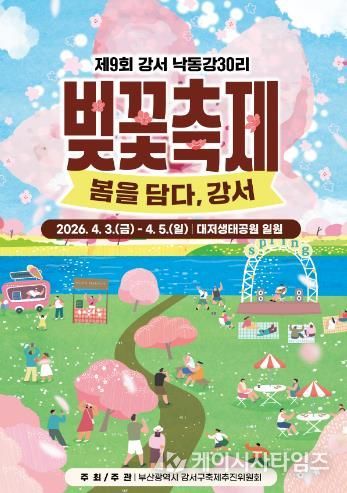 (케이시사타임즈) 부산 강서구는 오는 4월 3일부터 5일까지 3일간 대저생태공원 일원에서 ‘제9회 강서 낙동강30리 벚꽃축제’를 개최한다.