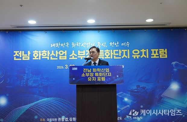 (케이시사타임즈) 여수시가 글로벌 석유화학 경기 침체와 공급과잉으로 인한 산업 위기를 극복하고 미래 성장 동력을 확보하기 위해 ‘화학산업 소재·부품·장비(소부장) 특화단지’ 유치 공감대 형성에 나섰다.
