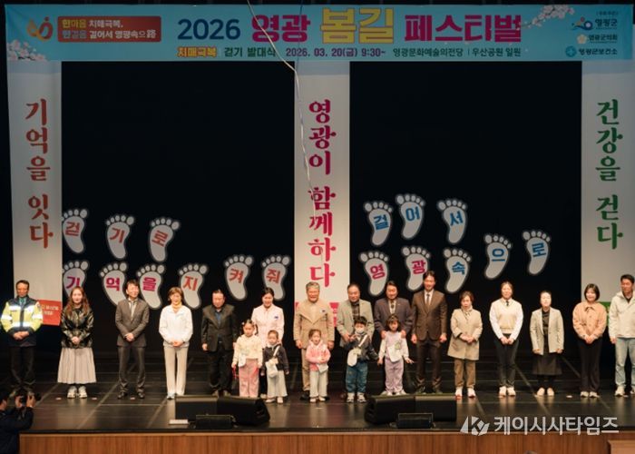 이날 참가자들은‘걷기로 기억을 지켜줘’, ‘걸어서 영광속으로’라는 메시지를 함께 완성하며 치매 예방과 건강한 생활 실천에 대한 공감대를 형성했다. 이어 군수님의 힘찬 출발 구호와 함께 군민들은 봄기운이 완연한 영광의 길을 함께 걸으며 건강한 일상을 다짐했다.