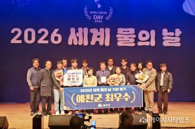(케이시사타임즈) 예천군은 ‘세계 물의 날 기념 평가’에서 ‘최우수’ 기관으로 선정되어, 20일 구미시 강동문화복지회관에서 열린 ‘2026년 세계 물의 날 기념행사’에서 기관 표창을 수여받았다.