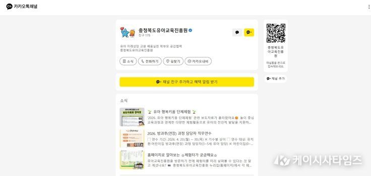(케이시사타임즈) 충청북도교육청 직속기관 유아교육진흥원은 유아‧학부모‧교원과의 소통을 강화하고 다양한 교육 프로그램과 정보를 보다 쉽고 빠르게 전달하기 위해 공식 SNS 채널을 운영한다고 밝혔다.
