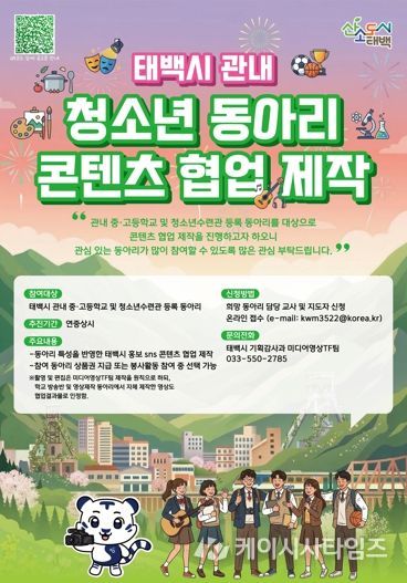(케이시사타임즈) 태백시는 청소년의 자발적인 참여를 통해 지역의 다양한 매력을 홍보하고, 미디어 제작 경험을 확대하기 위해 ‘청소년 동아리 콘텐츠 협업 제작 사업’을 연중 추진한다.