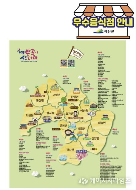 (케이시사타임즈) 예산군은 예산을 방문하는 관광객과 군민이 안심하고 음식점을 이용할 수 있도록 주요 관광지에 우수음식점 안내판을 설치했다고 밝혔다.