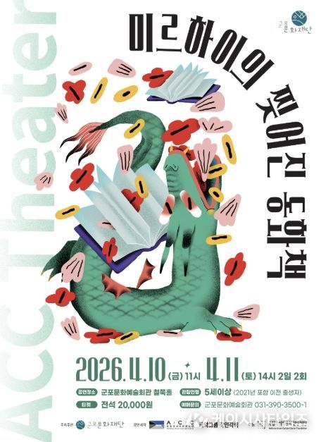 (케이시사타임즈) 군포문화재단은 어린이와 가족이 함께 관람할 수 있는 공연 '미르하이의 찢어진 동화책'을 4월 10일~11일 군포문화예술회관 철쭉홀에서 개최한다고 밝혔다. 이번 공연은 2026 국립아시아문화전당재단 어린이 공연 유통 공모사업의 일환으로, 국립아시아문화전당(ACC) 창·제작 어린이 공연을 지역에 소개하기 위해 마련됐다.