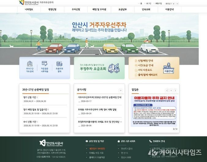 (케이시사타임즈) 안산도시공사는 거주자우선주차장 운영 서비스를 전면 개편하고, 내달 1일부터 한 달간 ‘2026년 순환배정’ 신청을 접수한다고 24일 밝혔다.