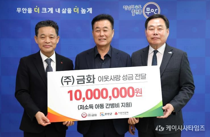 이번 기탁은 무안군 청계면에 위치한 ㈜금화가 질병 치료와 지속적인 관리가 필요한 전문가정위탁(드림스타트) 아동의 간병비 부담을 덜고 안정적인 보호 환경을 지원하기 위해 마련됐다.