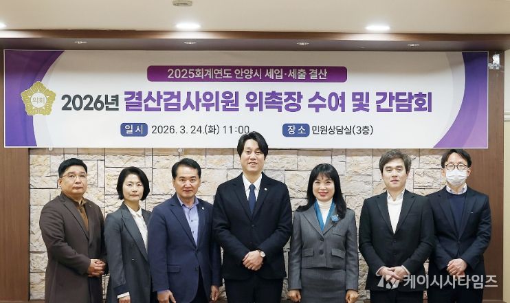 (케이시사타임즈) 안양시의회는 3월 24일 시의회 3층 민원상담실에서 ‘2025회계연도 결산검사위원 위촉식 및 간담회’를 개최하고, 투명하고 건전한 재정 운영을 위한 본격적인 행보에 나섰다.