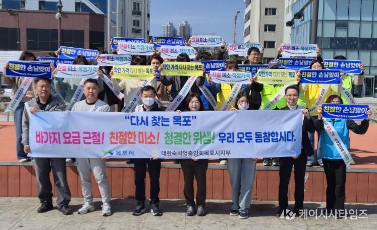 (케이시사타임즈) 목포시는 지난 23일 평화광장 일원에서 (사)대한숙박업중앙회 목포시지부와 함께 ‘관광객 맞이 숙박업소 친절·청결·합리적 요금 실천 캠페인’을 실시했다.