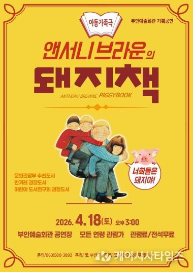 (케이시사타임즈) 부안군은 가족 뮤지컬 ‘돼지책’을 오는 4월 18일 오후 3시 부안예술회관 공연장에서 공연한다고 밝혔다.