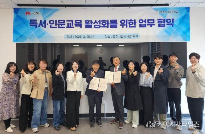 (케이시사타임즈) 전주시 도서관평생학습본부는 25일 전주시립도서관 꽃심 강당에서 전주솔내고등학교와 ‘독서·인문교육 활성화를 위한 업무협약’을 체결했다.