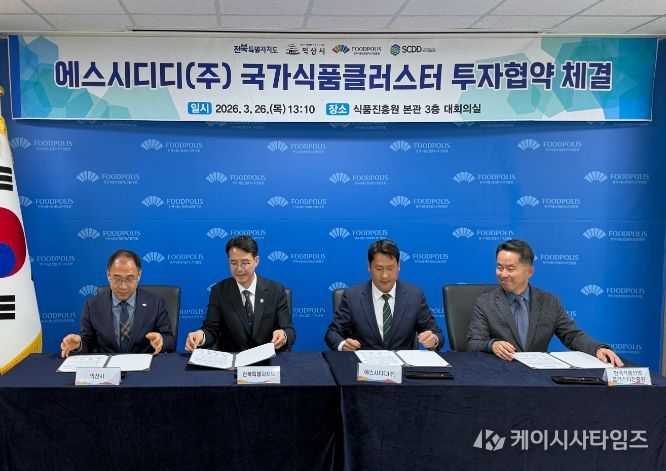 익산시는 26일 국가식품클러스터 입주기업 '에스시디디㈜(대표 강병수)'와 국가식품클러스터 내 제3공장 건립을 위한 투자협약을 체결했다.