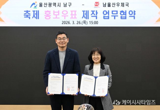 (케이시사타임즈) 울산 남구는 26일 남구청 소회의실에서 남울산우체국과 울산고래축제와 장생포 수국페스티벌 홍보를 위한 ‘나만의 우표’제작 업무협약을 체결했다.