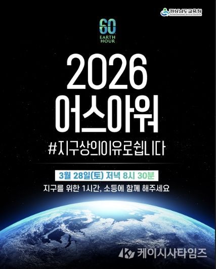 이번 캠페인은 28일 오후 8시 30분부터 9시 30분까지 한 시간 동안 진행되며, 교육청 본청을 비롯한 소속 기관들은 불필요한 전등을 모두 끄고 지구에 휴식을 주는 활동에 함께할 예정이다.
