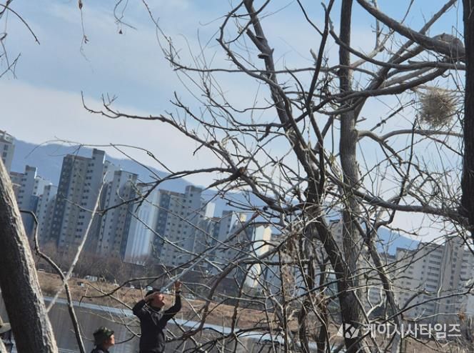 시는 지난 25일 동면 장학리 상고대 일대에서 춘천생태관리협회와 함께 민물가마우지 묵은 둥지 제거 작업을 진행했다.