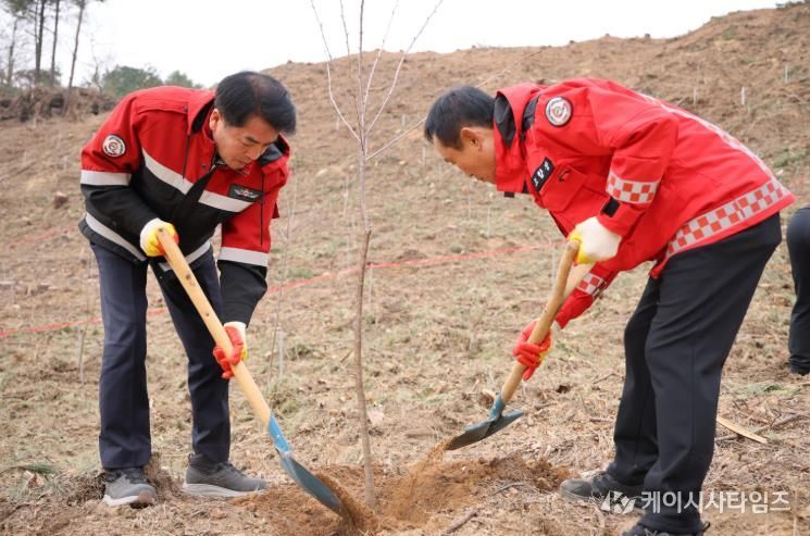 참석자들은 나무식재 요령 교육을 받은 뒤 본격적인 작업에 참여해 1ha 면적에 산벚나무 400주를 식재하고, 식재지 정리 작업까지 함께하며 산림 조성 과정을 현장에서 체험했다.