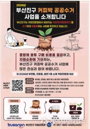 (케이시사타임즈) 부산 부산진구는 오는 4월부터 부전동, 전포동, 범천1동에 소재한 커피전문점을 대상으로 커피박 공공수거 사업을 시행한다.