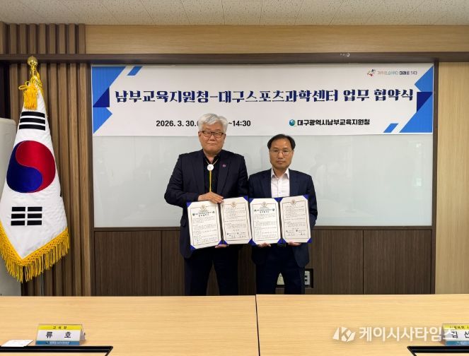(케이시사타임즈) 대구남부교육지원청은 지난 3월 30일 오후 2시, 남부교육지원청에서 대구스포츠과학센터와 업무 협약을 체결했다.