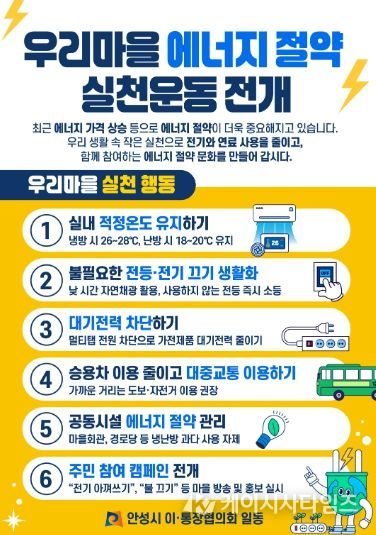 한편 안성시는 공공부문에서도 적정 실내온도 준수, 차량 운행 절감 등 에너지 절약 대책을 병행 추진하고 있다.