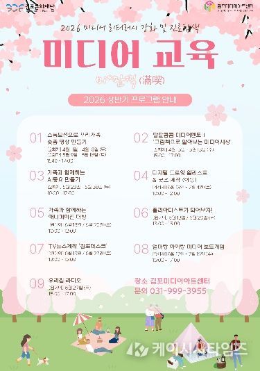 (케이시사타임즈) (재)김포문화재단은 김포미디어아트센터에서 오는 4월부터 11월까지‘미디어 리터러시 강화 및 진로탐색 프로그램’을 본격 추진한다고 밝혔다. 이번 사업은 디지털 환경 변화에 대응하여 시민의 미디어 이해 및 활용 역량을 체계적으로 강화하고, 창의적 미래 인재 양성을 위한 교육 기반을 구축하는 데 목적이 있다.