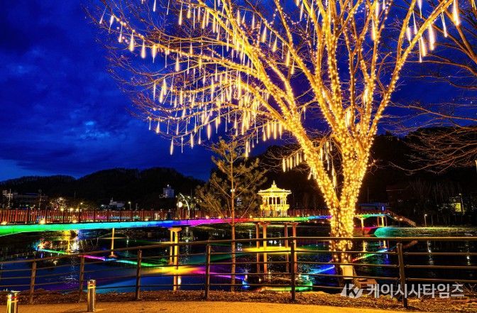 (케이시사타임즈) 괴산군 오작교 일원이 야간 경관조명으로 새로운 볼거리를 선사하고 있다.