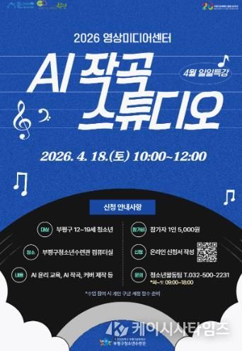 (케이시사타임즈) 부평구청소년수련관은 오는 18일 오전 10시 수련관에서 인공지능(AI)을 활용해 자신만의 디지털 앨범을 만들어보는 ‘AI 작곡 스튜디오’를 운영한다.