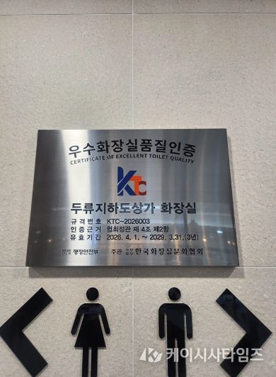 (케이시사타임즈) 대구공공시설관리공단은 지난 1일 두류지하도상가 화장실이 행정안전부 주관 한국화장실문화협회로부터 ‘우수화장실 품질인증’을 획득했다고 밝혔다.