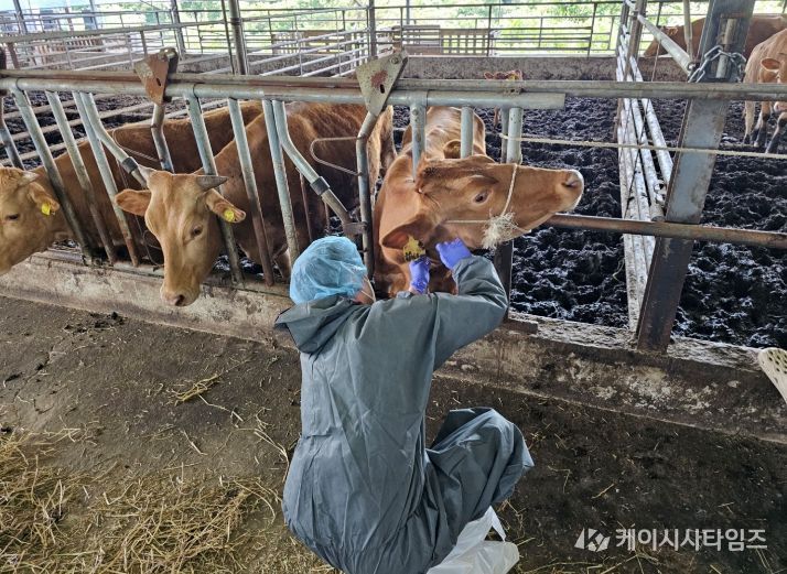 검사는 최근 경기 고양시 한우 농가에서 구제역이 발생함에 따라 당초 일정보다 앞당겨 실시한 상반기 백신 일제접종이 농가에서 제대로 이뤄졌는지 확인하고 야외 바이러스 감염 여부를 사전에 차단하기 위한 것이다.