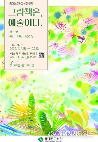 (케이시사타임즈) 동대전도서관은 4월 4일부터 26일까지 1층 전시실에서 이소영 그림책 원화 전시‘그림책은 예술이다: 책으로 봄! 여름, 겨울☆ 展’을 개최한다.