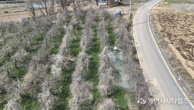 (케이시사타임즈) 예산군농업기술센터는 과수화상병 사전 예방을 위해 사과·배 미관리 과원을 대상으로 드론을 활용한 1차 방제 작업을 실시했다고 밝혔다.