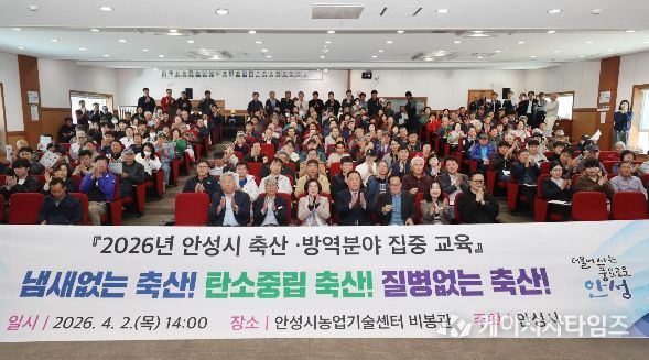 (케이시사타임즈) 안성시는 지난 4월 2일 농업기술센터 비봉관에서 관내 한·육우 및 젖소 농가 관계자 250여 명이 참석한 가운데 '2026년 축산·방역 분야 집중 교육'을 개최했다.