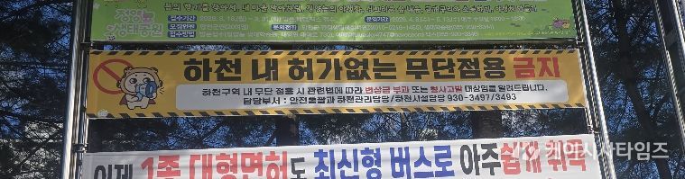 이를 위해 주요 하천변과 계곡 지역에 ‘하천 내 허가 없는 무단점용 금지’ 현수막을 설치하고, 전광판을 활용해 관련 내용을 지속적으로 안내하고 있다.