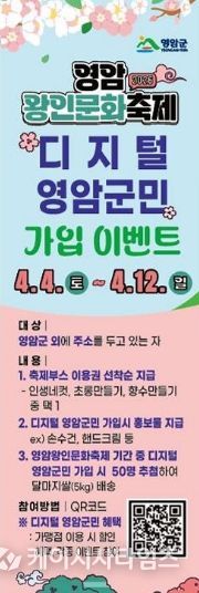 김선미 영암군 인구청년과장은 “디지털 영암군민은 누구나 1분이면 간편하게 가입할 수 있다”며 “축제를 찾은 방문객들이 디지털 군민이 되어 영암과 지속적인 인연을 이어가길 바란다”고 말했다.