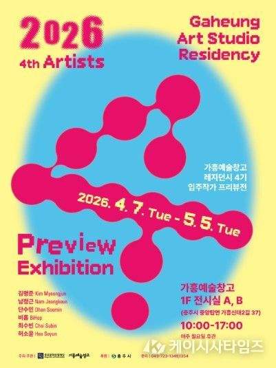 (케이시사타임즈) 충주문화관광재단은 4월 7일부터 5월 5일까지 가흥예술창고에서『2026 가흥예술창고 레지던시 4기 입주작가 프리뷰전』을 개최한다고 밝혔다.