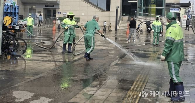 (케이시사타임즈) 수원시 팔달구은 지난 3일 수원역 광장 및 수원역 환승센터 일원에서 합동 환경정비를 실시했다.