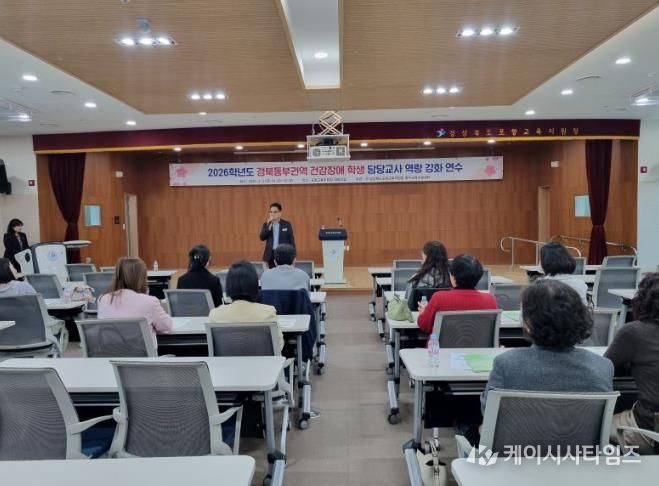 (케이시사타임즈) 포항교육지원청은 2026년 4월 3일 포항교육지원청 5층 대회의실에서 경북동부권역(포항,영덕,울진,청송,울릉) 건강장애학생 담당교사 30여명을 대상으로 2026학년도 경북동부권역 건강장애학생 담당교사 역량강화 연수를 실시했다.