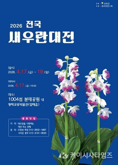 (케이시사타임즈) 신안군은 대한민국 자생란의 우수성과 가치를 널리 알리기 위해 ‘2026 전국새우란대전’을 오는 4월 17일부터 19일까지 3일간 황해교류박물관 일원(1004섬 분재정원)에서 개최한다.