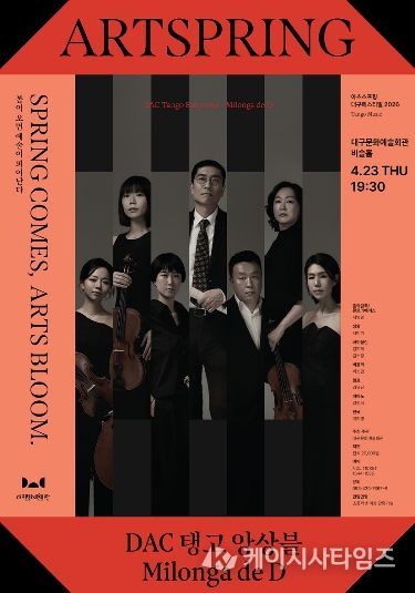 (케이시사타임즈) 대구문화예술진흥원 대구문화예술회관은 지역을 기반으로 활동하는 연주자들의 예술적 역량을 발굴하고 무대 기회를 확대하기 위해 ‘아츠스프링 대구 페스티벌’을 기획하고, 프로젝트 그룹 ‘DAC 탱고 앙상블’을 결성해 2년째 공연을 이어오고 있다.