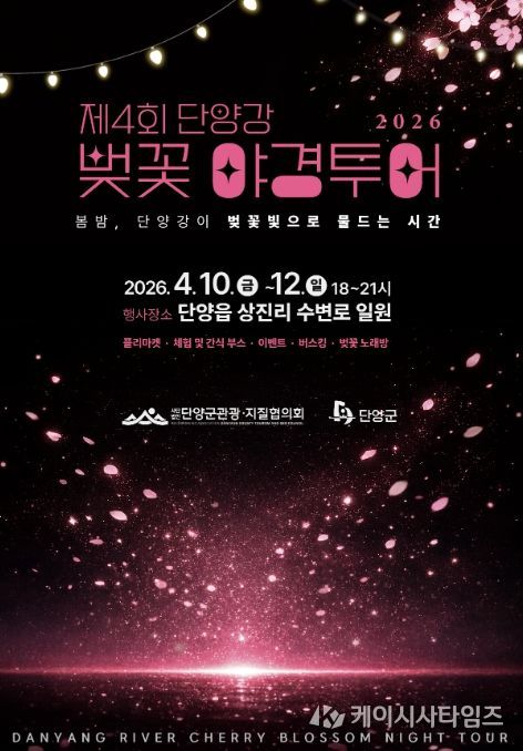 군 관계자는 “단양강변의 벚꽃과 야간 조명이 어우러진 이번 행사는 단양의 봄밤을 더욱 특별하게 기억하게 할 관광 콘텐츠가 될 것”이라며 “앞으로도 계절의 매력을 살린 차별화된 관광 프로그램을 지속적으로 발굴해 단양만의 체류형 관광 경쟁력을 높여가겠다”고 말했다.