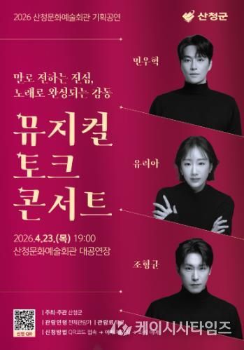 (케이시사타임즈) 산청군은 오는 23일 문화예술회관 대공연장에서 ‘민우혁×유리아×조형균 뮤지컬 토크 콘서트’를 개최한다고 10일 밝혔다.