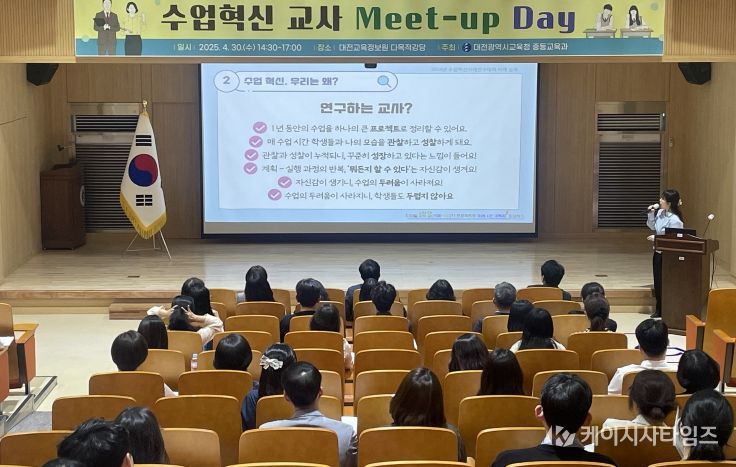 (케이시사타임즈) 대전시교육청은 4월 10일 대전진로융합교육원에서 중등 교원 70여 명을 대상으로 교사의 자발적인 수업 연구 노력을 지원하기 위한 ‘수업 혁신 교사 Meet-up Day’를 개최했다.