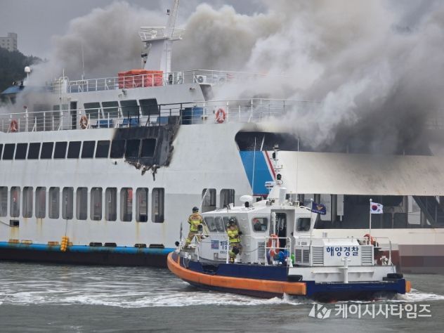 (케이시사타임즈) 완도해양경찰서는 10일 오전 7시 48분경 해남군 땅끝항에 정박 중이던 여객선 A호(621톤)에서 화재가 발생했다는 신고를 접수하고 경비함정과 구조세력을 신속히 투입해 화재를 진압했다.
