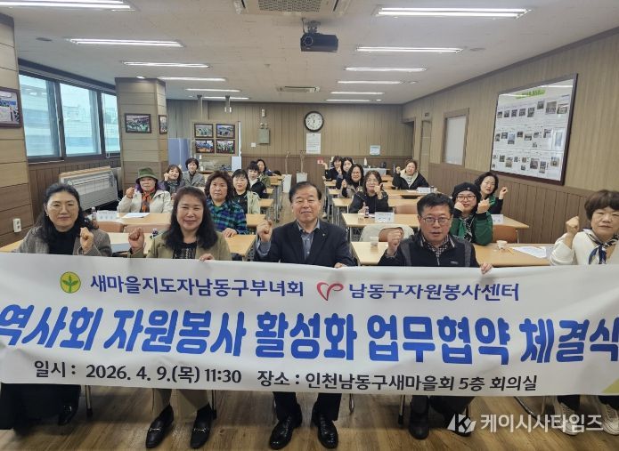 (케이시사타임즈) 인천시 남동구 새마을지도자남동구부녀회는 남동구자원봉사센터와 최근 인천남동구새마을회 5층 회의실에서 지역사회 자원봉사 활성화를 위한 업무협약(MOU)을 체결했다고 13일 밝혔다.