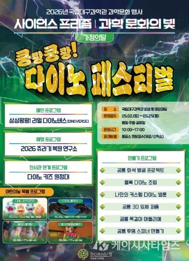 (케이시사타임즈) 국립대구과학관은 4월 과학의 달과 5월 가정의 달을 맞이하여 다양한 과학문화 체험 행사와 문화예술 공연을 개최한다.